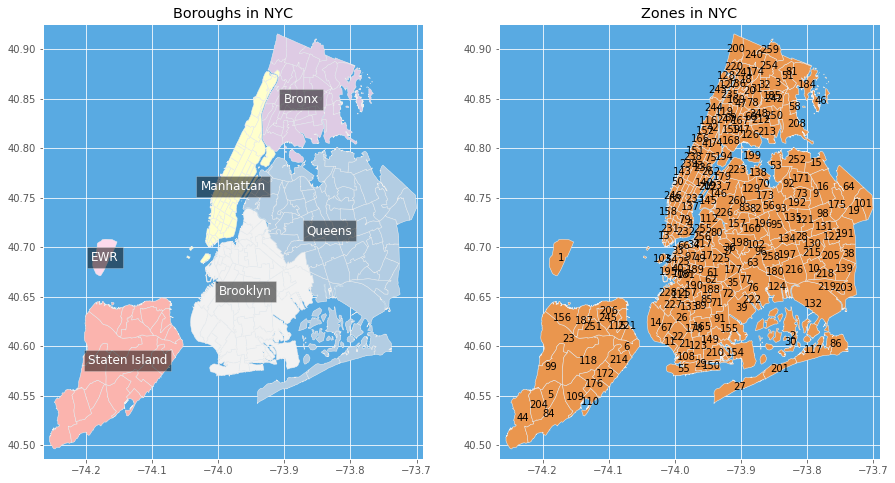 New York City boroughs (districts) and taxi zones.