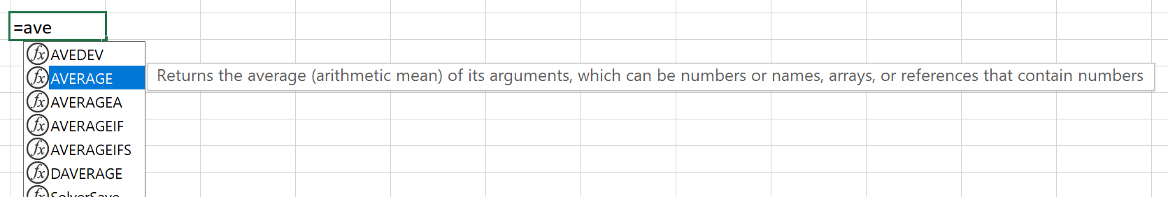 NotePlacing Calculations in Separate ColumnsWe do not place the mean and standard deviation below the data columns but in a separate column, for a reason. Namely, when there is only data in a column (and no other calculations) you can calculate the average of a column as follows:
