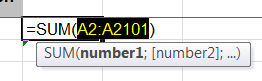Select cell L2, in which we have just calculated the sum of the cells A2:A2101.