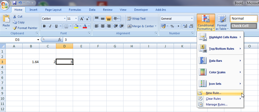 Click on the New Rule option. The New Formatting Rule menu is opened (see figure). Here you can select various options for formatting the data depending on the value. For example, numbers above or below a certain value can be colored. You can also provide all values from the set that are below the average with a specific layout. Even when text is used in the data, you can attach a layout to it. For example, you can color all cells with “yes” green.