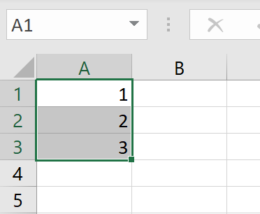 Excel has a status bar at the bottom of the screen, which can contain useful information. To illustrate this, put some data in cells A1, A2, and A3, like this: