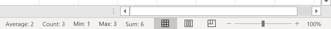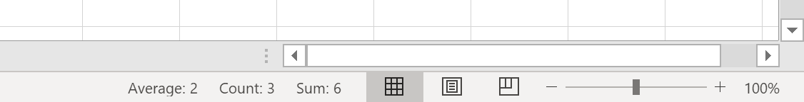 Once you have selected the three cells (as in the screenshot above), some statistics for these cells will appear in the status bar, like Average, Count (= number of selected cells), and Sum: