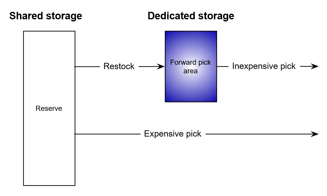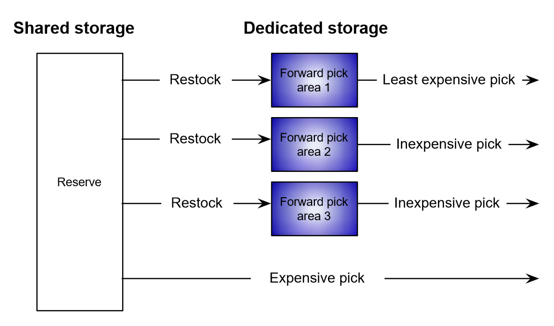 - Configure a forward area by balancing pick savings and replenishment costs.